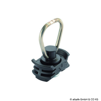Stabiles Single Fitting für Airline-Schienen mit Kunststofffuss. Auf einer Zurrschiene „standard“ entsteht mit diesem Fitting ein 1t Zurrpunkt (entsprechende Befestigung der Schiene vorausgesetzt)